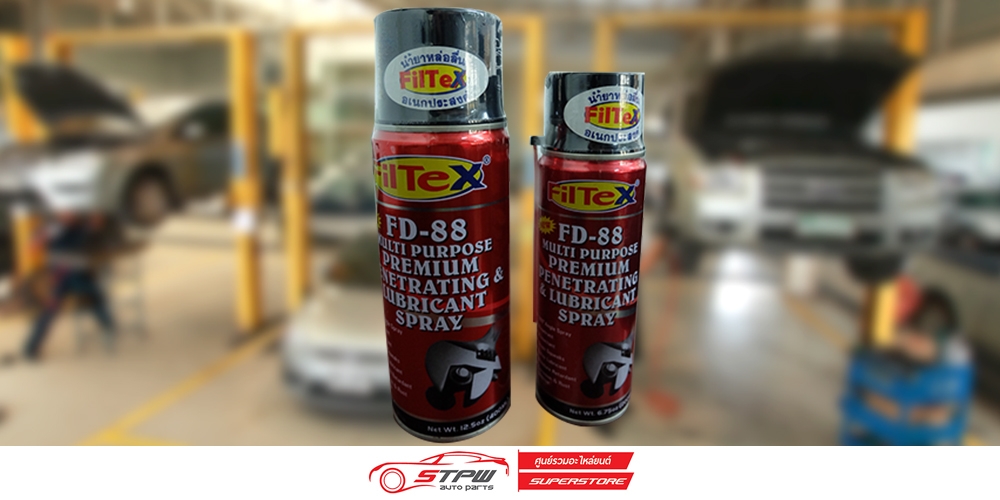 ทีมงาน STPW ขอแนะนำผลิตภัณฑ์คุณภาพ ราคาสุดพิเศษ สำหรับบริษัท ห้างร้าน หรือช่างผู้ชำนาญการทุกประเภท หมดปัญหาการทำงานเวลาถอด ประกอบชิ้นส่วนรถยนต์ ด้วยเครื่องมือลำบาก บางชิ้นส่วนถอดประกอบยาก อีกทั้งหากต้องการเพิ่มประสิทธิภาพการใช้งานเครื่องมือ หรือเครื่องยนต์ในการไล่ความชื้น สามารถทำได้ง่าย ๆ ด้วยสเปรย์หล่อลื่นเอนกประสงค์ FILTEX 4 D Penetrant & Lubricant Spray ด้วยคุณสมบัติเด่นในการใช้งาน คลายน๊อต คลายเกลียว ไล่ความชื้น หล่อลื่น ป้องกันสนิม คุณสมบัติ * Penetrant & Lubricant แทรกซึมหล่อลื่น * Corrosion Rust Inhibitor & Protectant ป้องกันสนิม * Stop Squeaks ป้องกันเสียงดังเสียงรบกวน * Moisture Retardant Formula ไล่ความชื้น ** สินค้าทุกตัวได้มีใบรับรองสินค้า  TDS และ MSDS การันตรีคุณภาพ